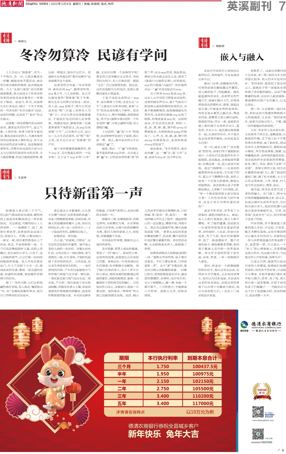 上几天进入“倒春寒”,天气一下子转冷,天一冷,人就会像昆虫一样懒,蜷缩身体不愿活动,就会充分依恋暖和的物质,就会想起亲情。古人“天寒白屋贫”名句在脑海里飘荡,地方民间关于形容冷的各类民谚俗语也会像雪片一样落在了眼前。说也巧,昨天,武康陈先生打来电话,探讨一下关于本地的一句常用的“冬冷勿算冷”民谚,该如何理解,这加深了“春冷”的文化涵义。