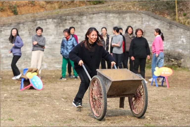 在武康街道对河口村,街道妇联组织开展“展巾帼风采迎亚运”趣味运动会。活动通过徒手搬运大米等多种形式,体验当年对河口水库建设时的艰辛(图⑧⑨)。