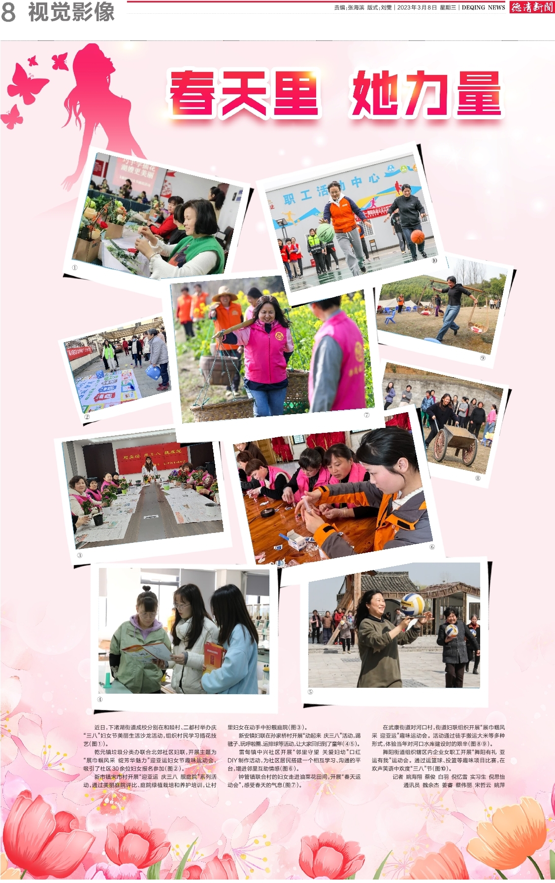 新安镇妇联在孙家桥村开展“动起来庆三八”活动,踢毽子、玩呼啦圈、运排球等活动,让大家回归到了童年(④⑤)。