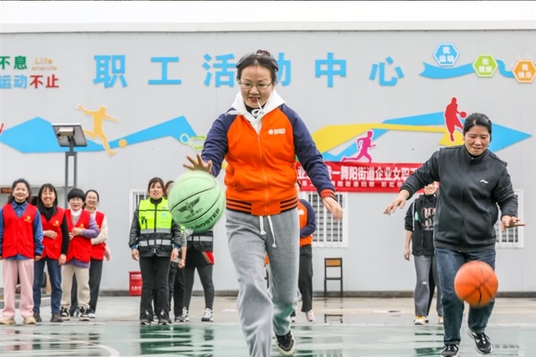 舞阳街道组织辖区内企业女职工开展“舞阳有礼亚运有我”运动会。通过运篮球、投篮等趣味项目比赛,在欢声笑语中欢度“三八”节(图⑩)。