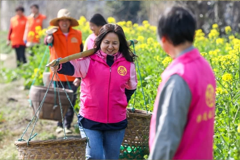 钟管镇联合村的妇女走进油菜花田间,开展“春天运动会”,感受春天的气息(图⑦)。