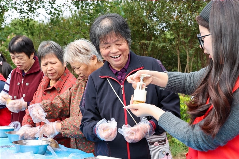 昨天,新安镇舍北村开展“情暖重阳、乐享银龄”活动,老人和学生、志愿者一起制作茱萸香囊、栗枣糕,老少同乐体验传统文化,喜迎重阳节。